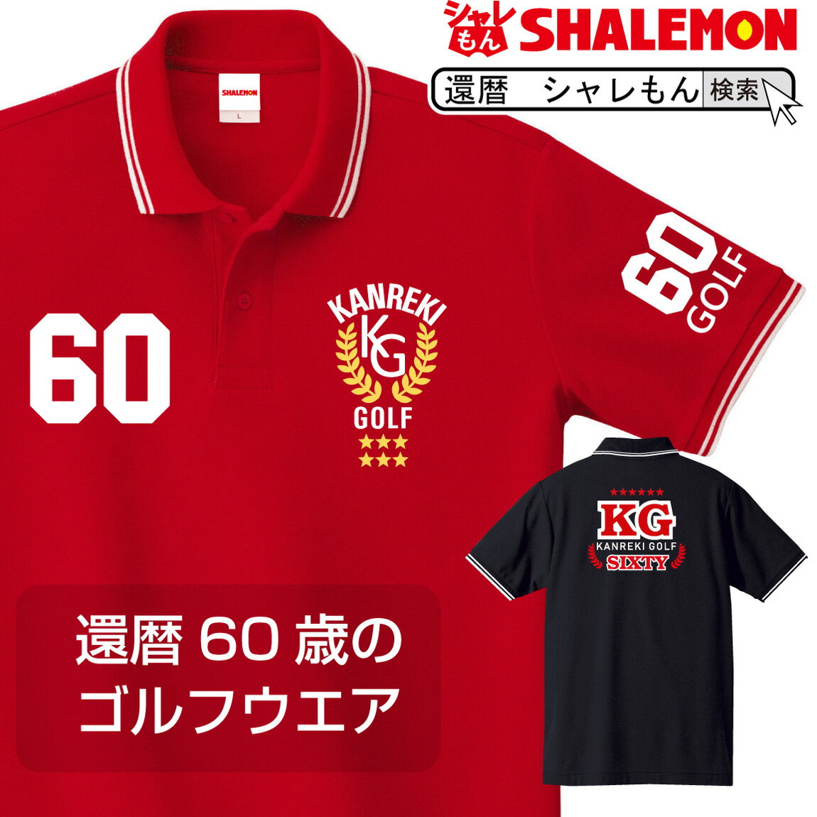 還暦祝い プレゼント 父 母 男 女 友人 赤色 ゴルフウェア【名入れプリント ポロ】スポーツ 好きな方 人気! 数字 60 エンブレム風 誕生日 敬老の日 母の日 父の日 贈り物 記念 アクティブ メッセージ ゴルフに着ていく!最短3日で発送/手作業仕上げ★きれい コンペ 喜ばれる