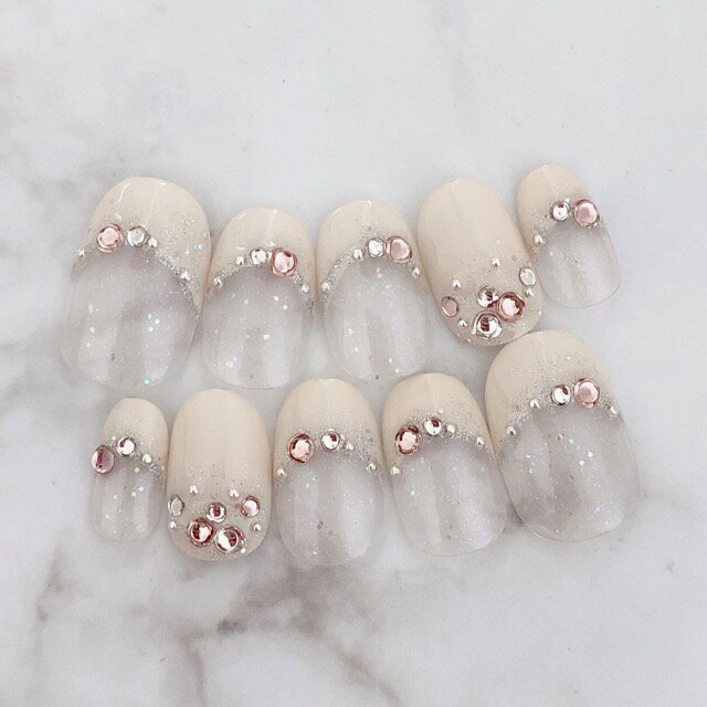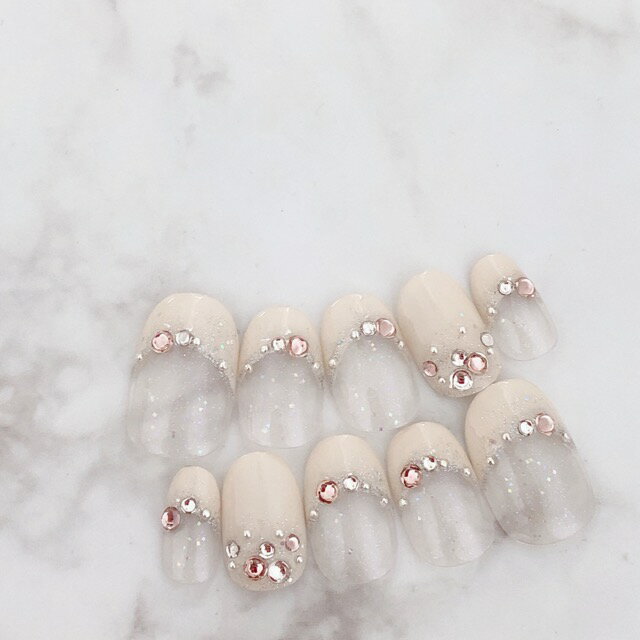 ネイルチップ ブライダル | 結婚式 ウエディング アイボリー ストーン デザイン 短い爪 ショート ロングチップ つけ爪 ちび爪 大きいデザイン つけ爪 ジェルネイル !シンプルで清楚な大人ネイル!