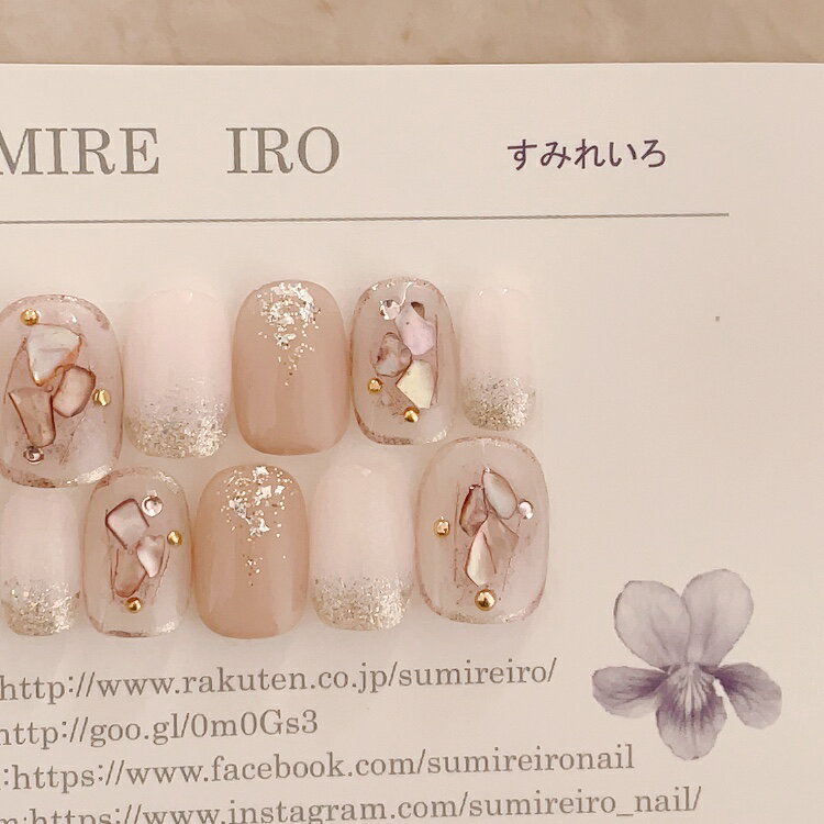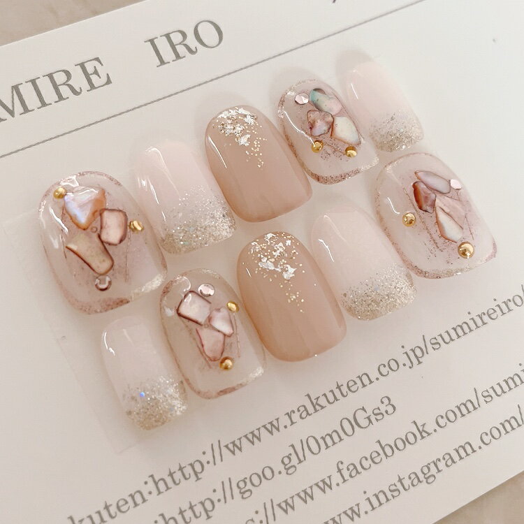 ネイルチップ つけ爪 デザイン かわいい ショート ロング シンプル 成人式 nail プレゼント 母 短い爪 小さい爪 大きい爪 ベリーショート ちび爪 結婚式 ウェディング 付け爪 ジェルネイル●ベールラメクラッシュシェル囲みネイルスモーキーピンク a/n