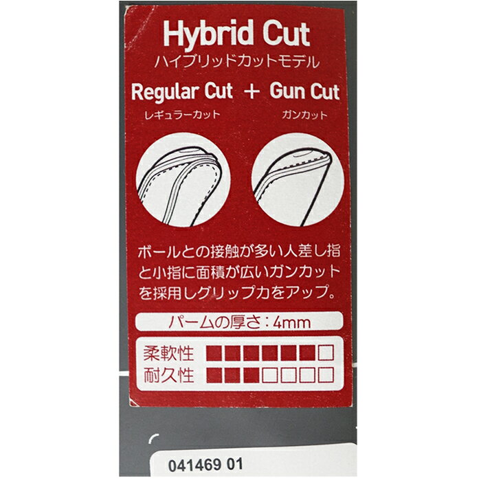 【ハイブリッドカットモデル(レギュラーカット+ガンカット】ボールとの接触が多い人差し指と小指に面積が広いガンカットを採用しグリップ力をアップ。